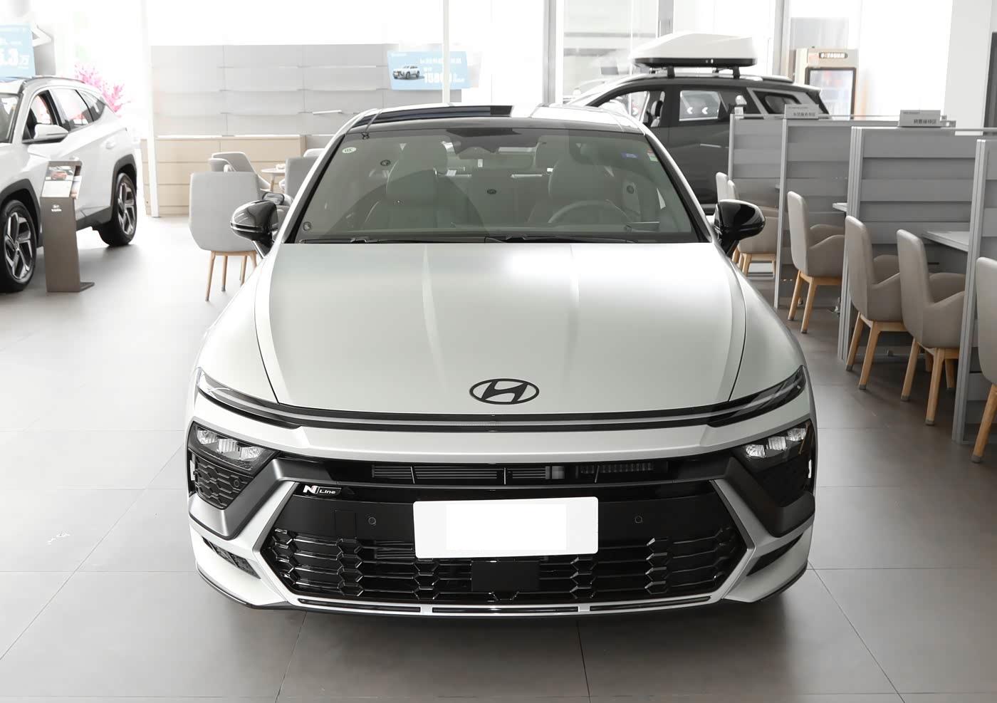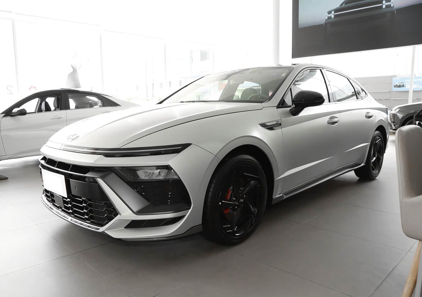 我们首先来看新车的外观设计方面,索纳塔的前脸设计灵感源自“星际战舰”,通过参数化格栅与贯穿式LED日行灯的组合,营造出未来感十足的视觉效果。 多边形大嘴式中网搭配镀铬饰条,既保留了现代家族的辨识度,又增添了运动气息。 头灯采用分体式设计,主灯组内嵌LED光源,辅以自动水平调节和自适应远近光功能,确保夜间行车安全。 前保险杠线条凌厉,配合可点亮灯带,不仅提升了空气动力学效率,还强化了科技氛围。 整体而言,车头造型在稳重与激进间取得平衡,吸引追求个性的消费者。